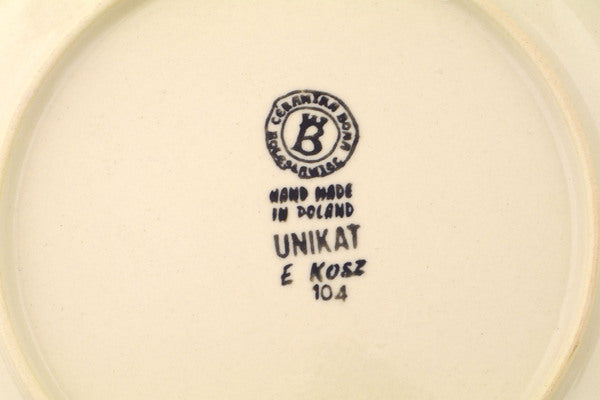 This Polish Pottery Plate is handmade and handpainted by the Ceramika Bona factory in Boleslawiec, Poland. Manufacturer item number H7126Q. It is 1¼" high and measures 10¼" by 10¼". The weight of this Plate is 1.7 lbs. It is part of the Red Peacock Eye Collection.