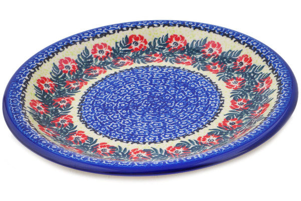 This Polish Pottery Plate is handmade and handpainted by the Ceramika Bona factory in Boleslawiec, Poland. Manufacturer item number H3562P. It is 1¼" high and measures 10¼" by 10¼". The weight of this Plate is 1.7 lbs. It is part of the Red Wreath Collection.