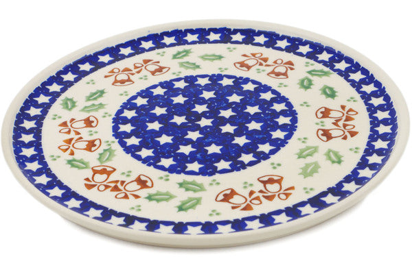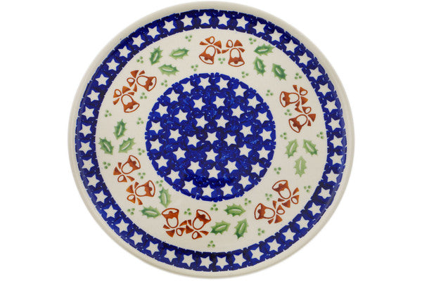 This Polish Pottery Plate is handmade and handpainted by the Manufaktura factory in Boleslawiec, Poland. Manufacturer item number H0839O. It is ½" high and measures 9¾" by 9¾". The weight of this Plate is 1.5 lbs. It is part of the Sleigh Bells Collection.