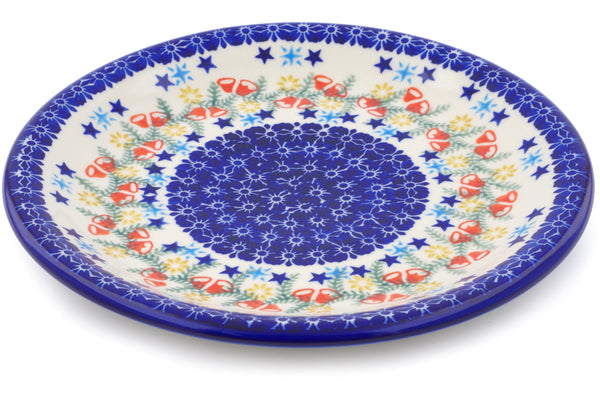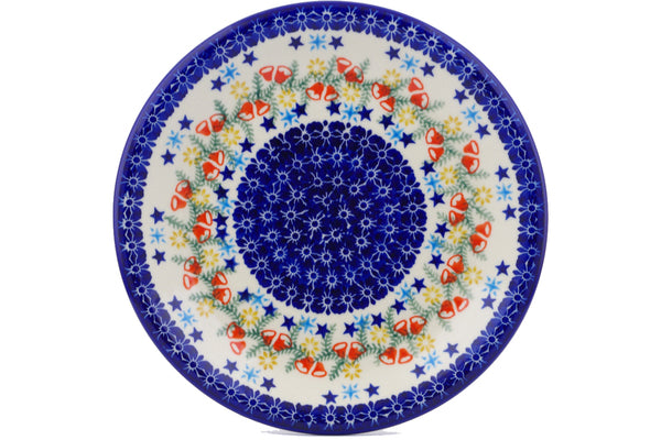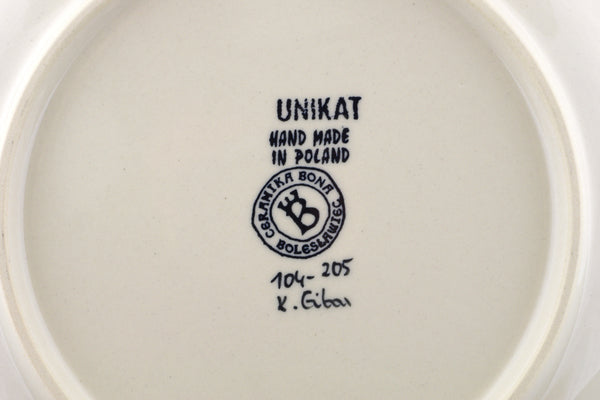 This Polish Pottery Plate is handmade and handpainted by the Ceramika Bona factory in Boleslawiec, Poland. Manufacturer item number H1243J. It is 1" high and measures 9¾" by 9¾". The capacity of this Plate is 15.42 oz (brimful) and it weighs 1.5 lbs. It is part of the Wreath Of Bells Collection.