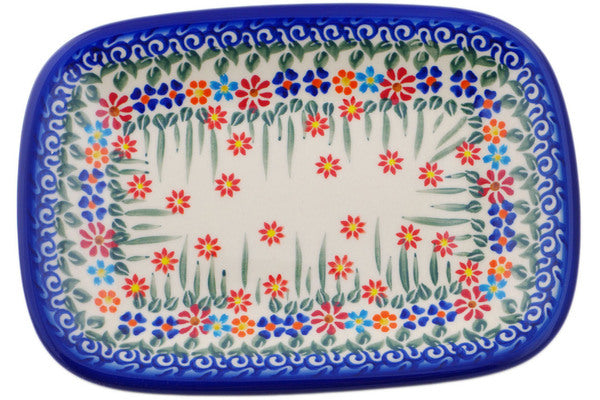 This Polish Pottery Platter is handmade and handpainted by the Ceramika Bona factory in Boleslawiec, Poland. Manufacturer item number H3973Q. It is 1" high and measures 9¾" by 7". The weight of this Platter is 1.5 lbs. It is part of the Blissful Daisy Collection.