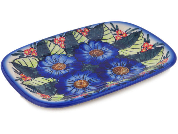 This Polish Pottery Platter is handmade and handpainted by the Ceramika Bona factory in Boleslawiec, Poland. Manufacturer item number H3971Q. It is 1" high and measures 9¾" by 7". The weight of this Platter is 1.5 lbs. It is part of the Blue Bouquet Collection.