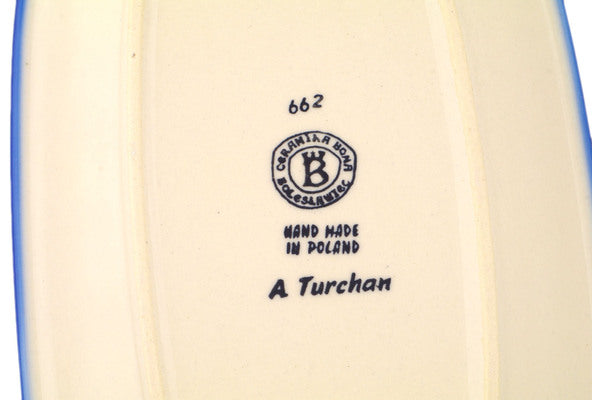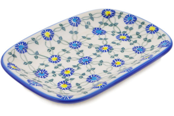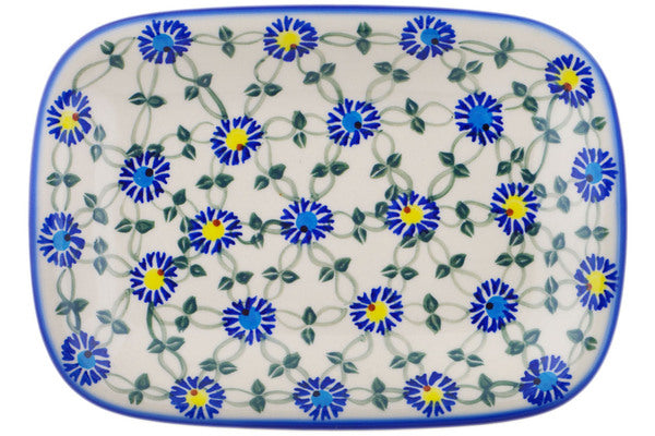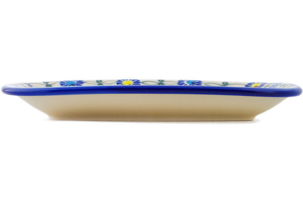 This Polish Pottery Platter is handmade and handpainted by the Ceramika Bona factory in Boleslawiec, Poland. Manufacturer item number H1910R. It is 1" high and measures 9¾" by 7". The weight of this Platter is 1.5 lbs. It is part of the Blue Thistle Beauty Collection.