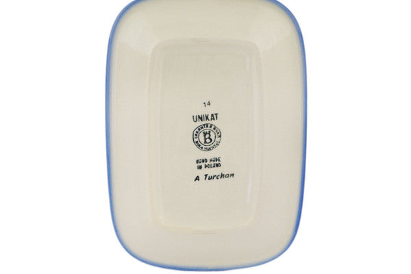 This is a Polish pottery Unikat (Signature) Platter, which means that it has been hand painted with both sponges and brushes and it is signed by the artist who painted it. Unikat pieces are the most intricate works of art. Larger Unikat items take hours of very careful work to finish.