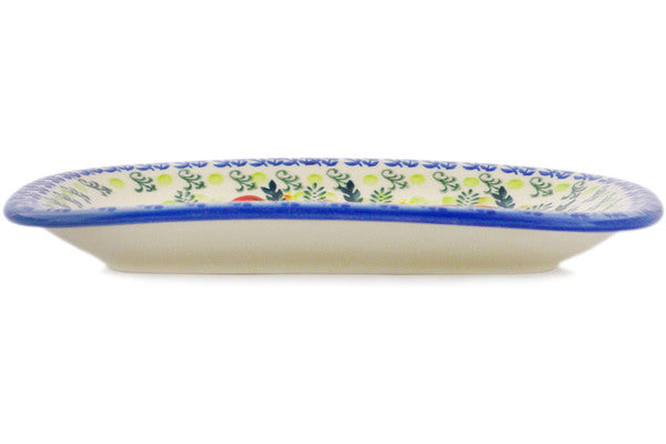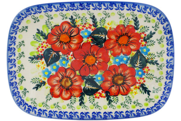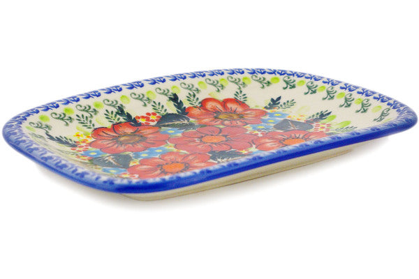This Polish Pottery Platter is handmade and handpainted by the Ceramika Bona factory in Boleslawiec, Poland. Manufacturer item number H6489F. It is ¾" high and measures 9¾" by 7". The weight of this Platter is 1.4 lbs. It is part of the Bold Red Poppies Collection.