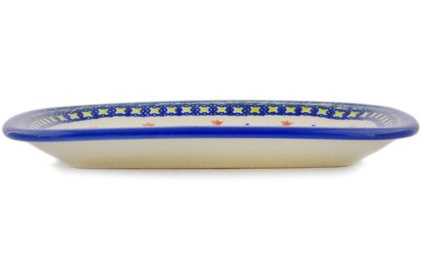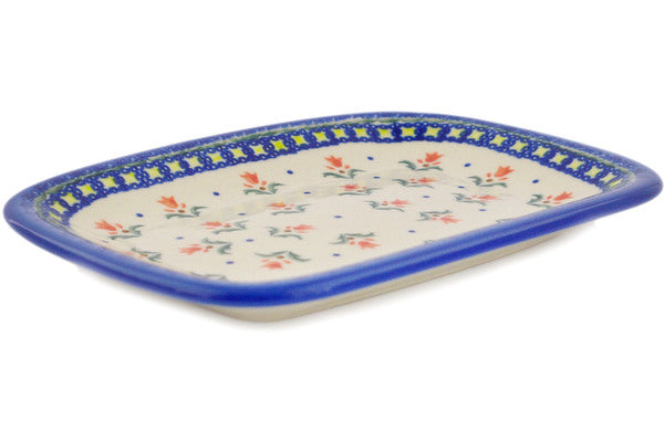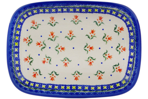 This Polish Pottery Platter is handmade and handpainted by the Ceramika Bona factory in Boleslawiec, Poland. Manufacturer item number H5360R. It is ¾" high and measures 9¾" by 7". The weight of this Platter is 1.4 lbs. It is part of the Cocentric Tulips Collection.