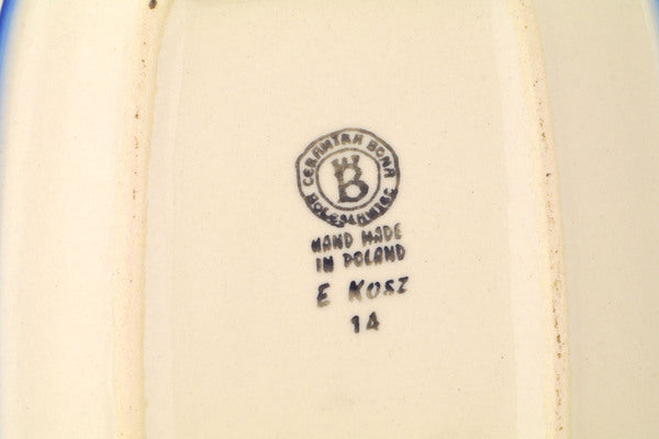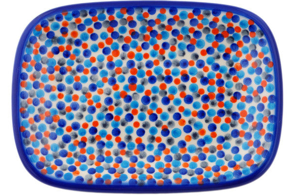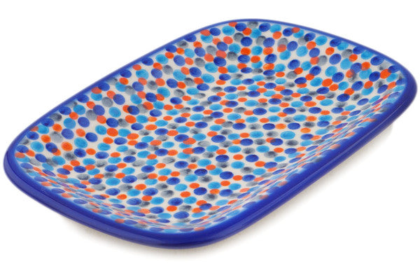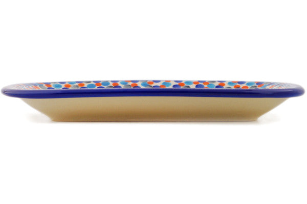This Polish Pottery Platter is handmade and handpainted by the Ceramika Bona factory in Boleslawiec, Poland. Manufacturer item number H2203R. It is ¾" high and measures 9¾" by 7". The weight of this Platter is 1.4 lbs. It is part of the Dot Show Collection.