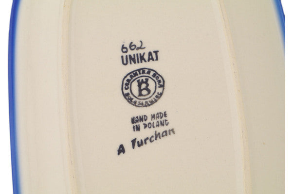 This Polish Pottery Platter is handmade and handpainted by the Ceramika Bona factory in Boleslawiec, Poland. Manufacturer item number H0727R. It is 1" high and measures 9¾" by 7". The weight of this Platter is 1.5 lbs. It is part of the Elegant Garland Collection.
