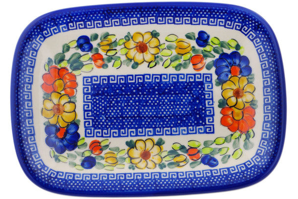 This Polish Pottery Platter is handmade and handpainted by the Ceramika Bona factory in Boleslawiec, Poland. Manufacturer item number H3972Q. It is 1" high and measures 9¾" by 7". The weight of this Platter is 1.5 lbs. It is part of the Fall Garden Collection.