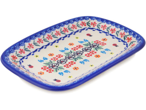 This Polish Pottery Platter is handmade and handpainted by the Ceramika Bona factory in Boleslawiec, Poland. Manufacturer item number H3894Q. It is 1" high and measures 9¾" by 7". The weight of this Platter is 1.5 lbs. It is part of the Fanciful Ladybug Collection.