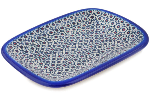 This Polish Pottery Platter is handmade and handpainted by the Ceramika Bona factory in Boleslawiec, Poland. Manufacturer item number H9668Q. It is ¾" high and measures 9¾" by 7". The weight of this Platter is 1.4 lbs. It is part of the Field Of Black Daisies Collection.