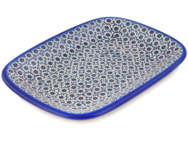 This Polish Pottery Platter is handmade and handpainted by the Ceramika Bona factory in Boleslawiec, Poland. Manufacturer item number H9725Q. It is 1" high and measures 9¾" by 7". The weight of this Platter is 1.5 lbs. It is part of the Field Of Black Daisies Collection.