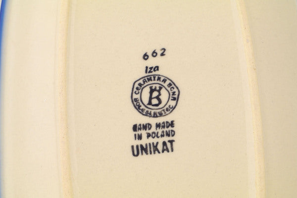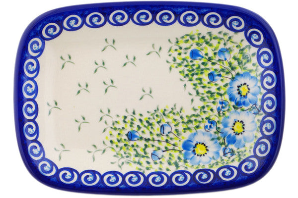 This Polish Pottery Platter is handmade and handpainted by the Ceramika Bona factory in Boleslawiec, Poland. Manufacturer item number H2093R. It is 1" high and measures 9¾" by 7". The weight of this Platter is 1.5 lbs. It is part of the Gorgeous Morning Glory Collection.