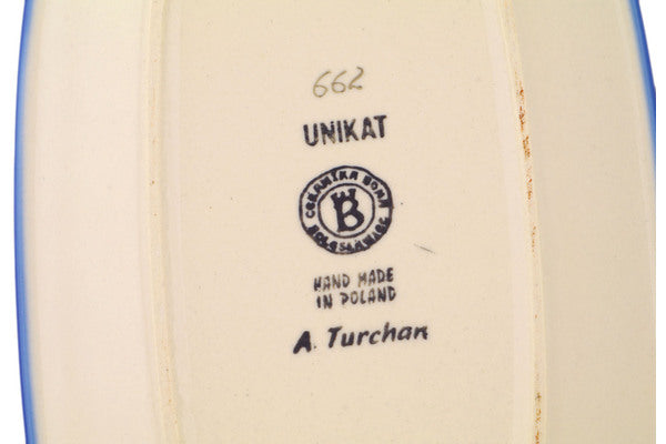 This Polish Pottery Platter is handmade and handpainted by the Ceramika Bona factory in Boleslawiec, Poland. Manufacturer item number H0701R. It is 1" high and measures 9¾" by 7". The weight of this Platter is 1.5 lbs. It is part of the Hibiscus Haven Collection.