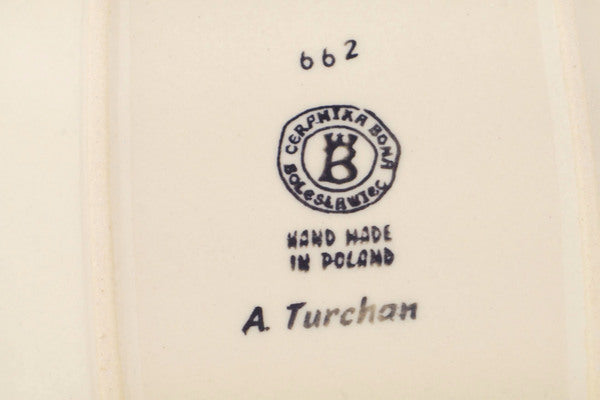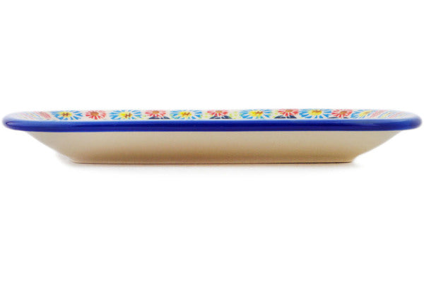 This Polish Pottery Platter is handmade and handpainted by the Ceramika Bona factory in Boleslawiec, Poland. Manufacturer item number H2035R. It is 1" high and measures 9¾" by 7". The weight of this Platter is 1.5 lbs. It is part of the Long-stemmed Beauties Collection.
