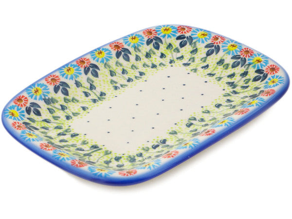 This Polish Pottery Platter is handmade and handpainted by the Ceramika Bona factory in Boleslawiec, Poland. Manufacturer item number H2173R. It is ¾" high and measures 9¾" by 7". The weight of this Platter is 1.4 lbs. It is part of the Long-stemmed Beauties Collection.