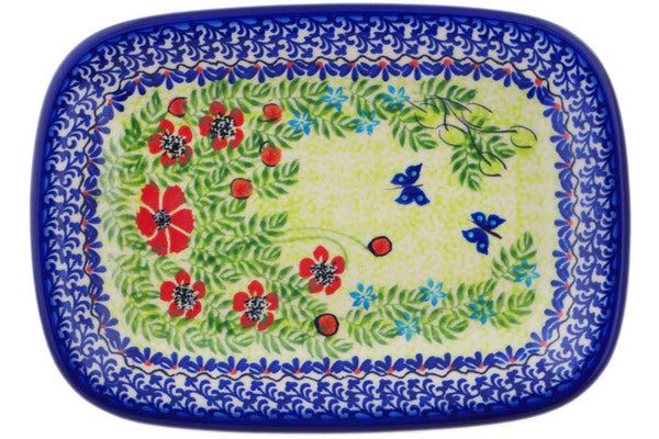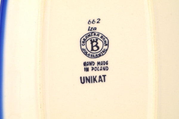This Polish Pottery Platter is handmade and handpainted by the Ceramika Bona factory in Boleslawiec, Poland. Manufacturer item number H8771Q. It is 1" high and measures 9¾" by 7". The weight of this Platter is 1.5 lbs. It is part of the Metamorphosis Collection.