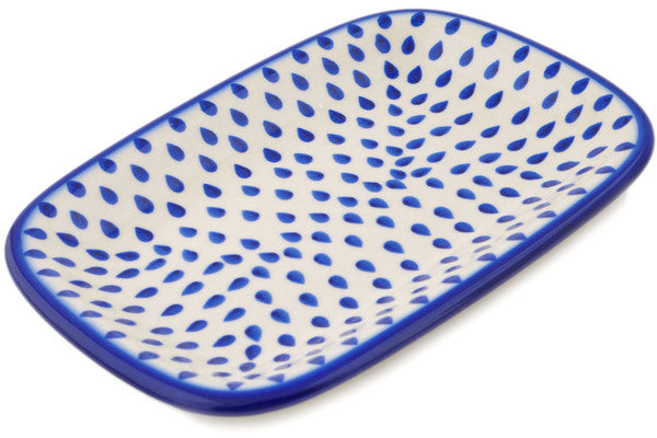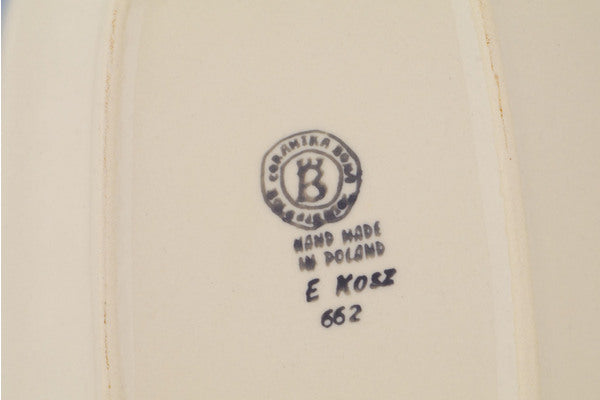 This Polish Pottery Platter is handmade and handpainted by the Ceramika Bona factory in Boleslawiec, Poland. Manufacturer item number H1232R. It is 1" high and measures 9¾" by 7". The weight of this Platter is 1.5 lbs. It is part of the Morning Dew Collection.