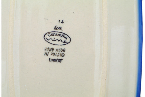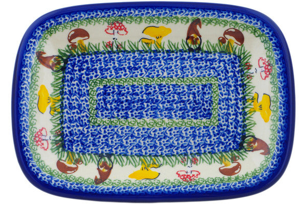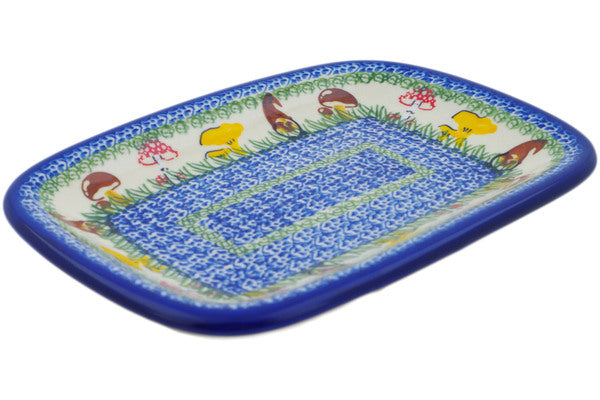 This Polish Pottery Platter is handmade and handpainted by the Ceramika Nina factory in Boleslawiec, Poland. Manufacturer item number H1432P. It is ¾" high and measures 9¾" by 7". The weight of this Platter is 1.4 lbs. It is part of the Mushroom Garden Collection.
