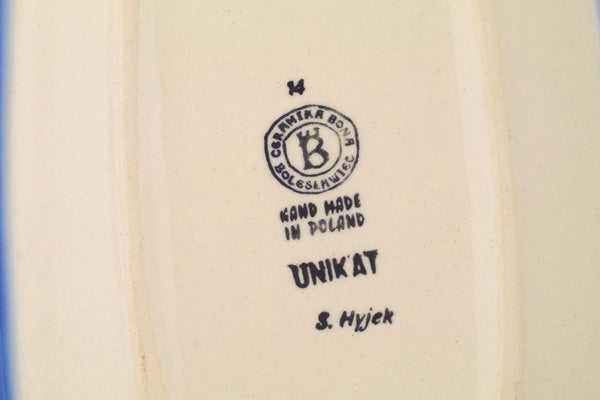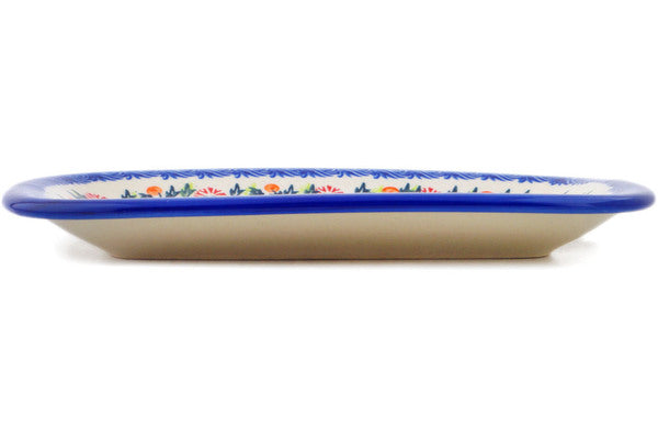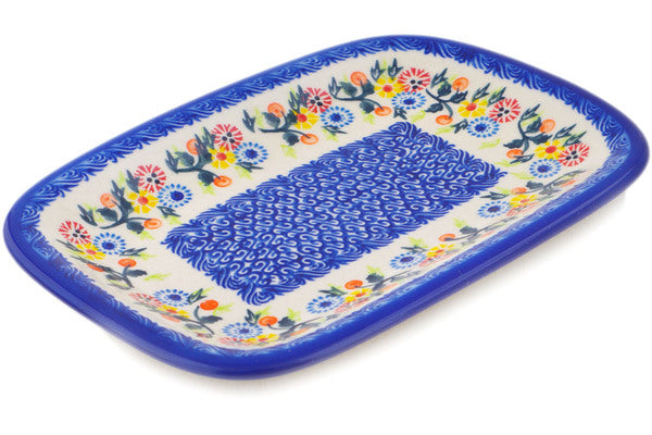 This Polish Pottery Platter is handmade and handpainted by the Ceramika Bona factory in Boleslawiec, Poland. Manufacturer item number H1879R. It is ¾" high and measures 9¾" by 7". The weight of this Platter is 1.4 lbs. It is part of the Pastel Spring Wreath Collection.