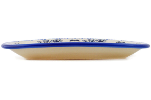 This Polish Pottery Platter is handmade and handpainted by the Ceramika Bona factory in Boleslawiec, Poland. Manufacturer item number H3255P. It is ¾" high and measures 9¾" by 7". The weight of this Platter is 1.4 lbs. It is part of the Spooky Town Collection.