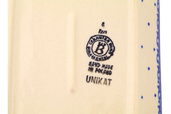 This is a Polish pottery Unikat (Signature) Platter with Handles, which means that it has been hand painted with both sponges and brushes and it is signed by the artist who painted it. Unikat pieces are the most intricate works of art. Larger Unikat items take hours of very careful work to finish.