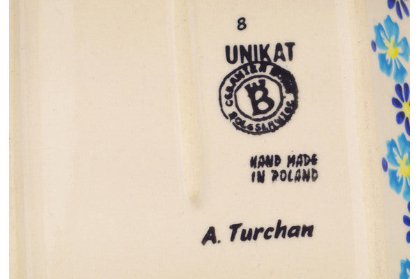 This is a Polish pottery Unikat (Signature) Platter with Handles, which means that it has been hand painted with both sponges and brushes and it is signed by the artist who painted it. Unikat pieces are the most intricate works of art. Larger Unikat items take hours of very careful work to finish.
