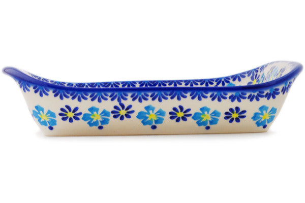 This Polish Pottery Platter with Handles is handmade and handpainted by the Ceramika Bona factory in Boleslawiec, Poland. Manufacturer item number H1071R. It is 2¼" high and measures 9¾" by 6¼". The weight of this Platter with Handles is 1.7 lbs. It is part of the Endless Summer Collection.