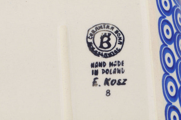 This Polish Pottery Platter with Handles is handmade and handpainted by the Ceramika Bona factory in Boleslawiec, Poland. Manufacturer item number H7140Q. It is 2¼" high and measures 9¾" by 6¼". The weight of this Platter with Handles is 1.7 lbs. It is part of the Neon Poppies Collection.
