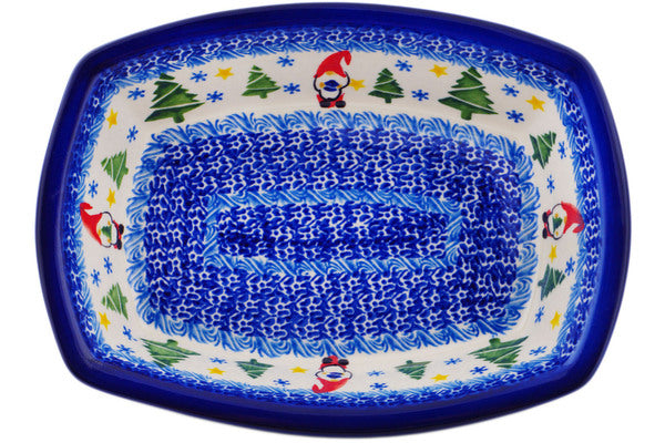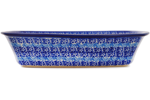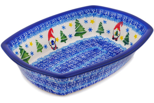 This Polish Pottery Rectangular Baker is handmade and handpainted by the Ceramika Nina factory in Boleslawiec, Poland. Manufacturer item number H1874P. It is 2¼" high and measures 9¾" by 7". The capacity of this Rectangular Baker is 51.40 oz (brimful) and it weighs 1.7 lbs. It is part of the Twinkle Twinkle Little Gnome Collection.