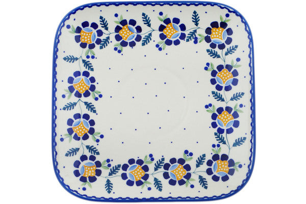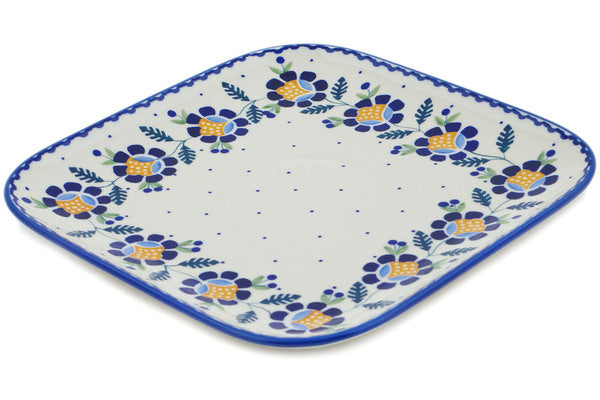 This Polish Pottery Square Plate is handmade and handpainted by the Manufaktura factory in Boleslawiec, Poland. Manufacturer item number H0917O. It is 1" high and measures 10" by 10". The weight of this Square Plate is 2.0 lbs. It is part of the Orange And Blue Flower Collection.