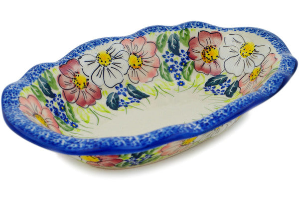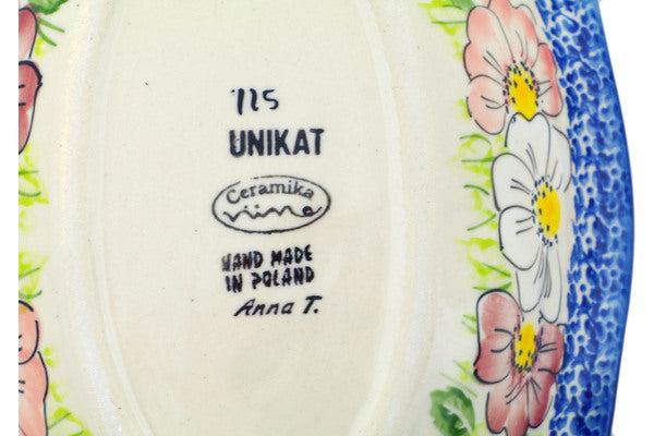 This is a Polish pottery Unikat (Signature) Oval Bowl, which means that it has been hand painted with both sponges and brushes and it is signed by the artist who painted it. Unikat pieces are the most intricate works of art. Larger Unikat items take hours of very careful work to finish.