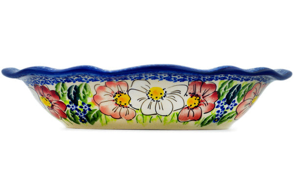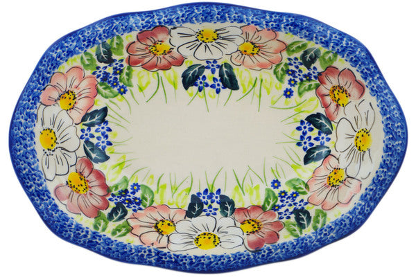 This Polish Pottery Oval Bowl is handmade and handpainted by the Ceramika Nina factory in Boleslawiec, Poland. Manufacturer item number H1633P. It is 2¼" high and measures 11½" by 7¾". The capacity of this Oval Bowl is 27.05 oz (brimful) and it weighs 1.9 lbs. It is part of the Maroon Blossoms Collection.