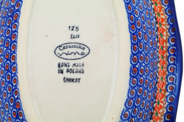 This is a Polish pottery Unikat (Signature) Oval Bowl, which means that it has been hand painted with both sponges and brushes and it is signed by the artist who painted it. Unikat pieces are the most intricate works of art. Larger Unikat items take hours of very careful work to finish.