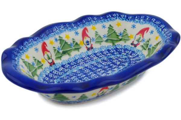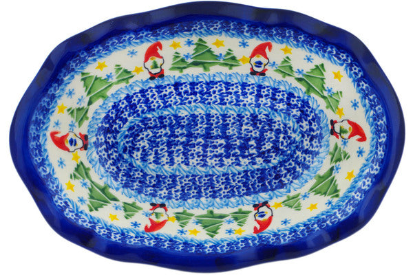 This Polish Pottery Oval Bowl is handmade and handpainted by the Ceramika Nina factory in Boleslawiec, Poland. Manufacturer item number H1516P. It is 2¼" high and measures 11½" by 7¾". The capacity of this Oval Bowl is 27.05 oz (brimful) and it weighs 1.9 lbs. It is part of the Twinkle Twinkle Little Gnome Collection.