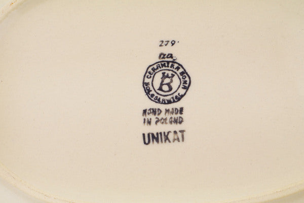 This is a Polish pottery Unikat (Signature) Oval Platter, which means that it has been hand painted with both sponges and brushes and it is signed by the artist who painted it. Unikat pieces are the most intricate works of art. Larger Unikat items take hours of very careful work to finish.