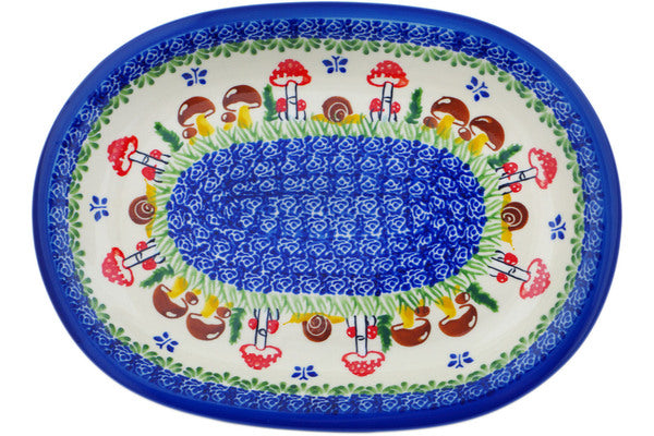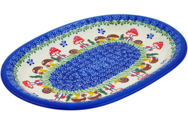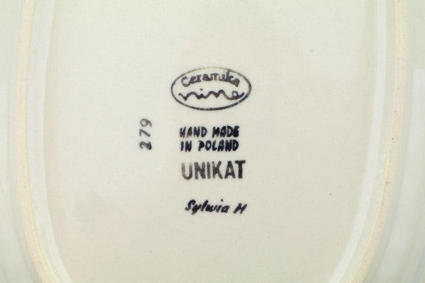 This Polish Pottery Oval Platter is handmade and handpainted by the Ceramika Nina factory in Boleslawiec, Poland. Manufacturer item number H3257P. It is 1¼" high and measures 11½" by 8½". The capacity of this Oval Platter is 18.60 oz (brimful) and it weighs 2.3 lbs. It is part of the Gardens In Poland Collection.