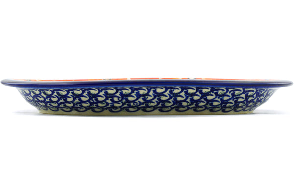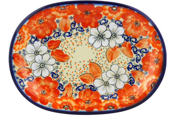This Polish Pottery Oval Platter is handmade and handpainted by the Ceramika Bona factory in Boleslawiec, Poland. Manufacturer item number H0127J. It is 1¼" high and measures 11½" by 8½". The capacity of this Oval Platter is 18.60 oz (brimful) and it weighs 2.3 lbs. It is part of the Poppy Passion Collection.