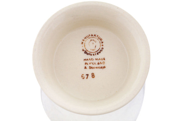 This Polish Pottery Glass is handmade and handpainted by the Manufaktura factory in Boleslawiec, Poland. Manufacturer item number H4538Q. It is 5½" high and measures 4" by 4". The capacity of this Glass is 11.50 oz (brimful) and it weighs 0.9 lbs. It is part of the Peacock Collection.