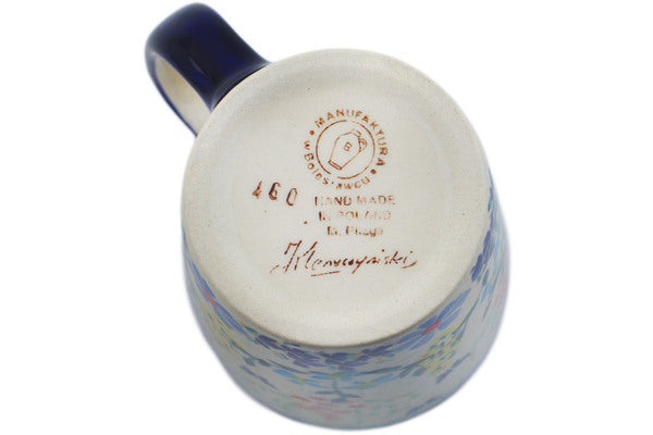 This is a Polish pottery Unikat (Signature) Mug, which means that it has been hand painted with both sponges and brushes and it is signed by the artist who painted it. Unikat pieces are the most intricate works of art. Larger Unikat items take hours of very careful work to finish.