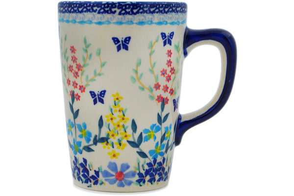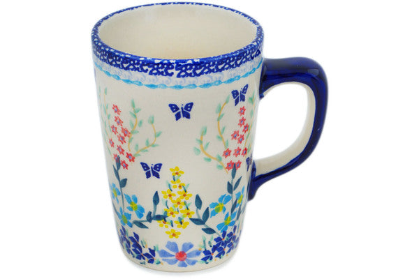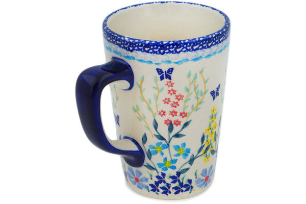 This Polish Pottery Mug is handmade and handpainted by the Manufaktura factory in Boleslawiec, Poland. Manufacturer item number H2313P. It is 4½" high and measures 4½" by 3¼". The capacity of this Mug is 11.56 oz (brimful) and it weighs 0.8 lbs. It is part of the Breathtaking Butterflies Collection.