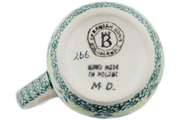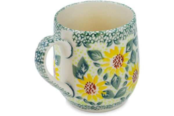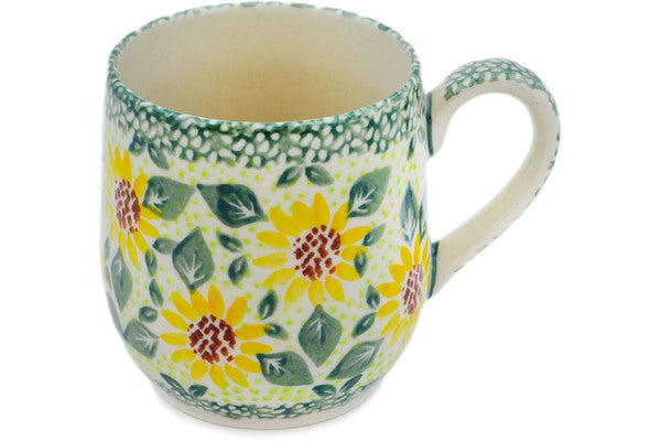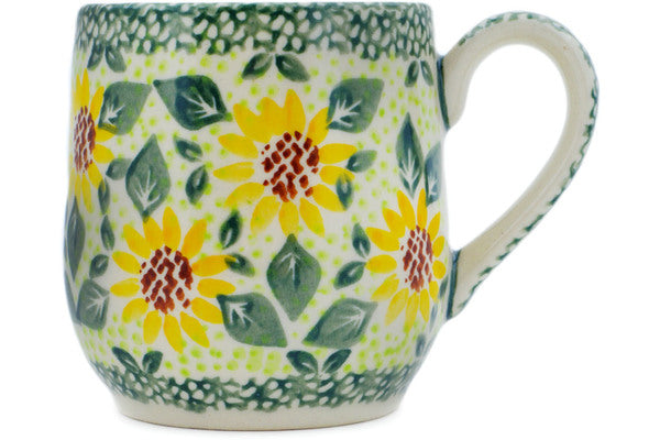 This Polish Pottery Mug is handmade and handpainted by the Ceramika Bona factory in Boleslawiec, Poland. Manufacturer item number H0354P. It is 3½" high and measures 4¾" by 3½". The capacity of this Mug is 11.43 oz (brimful) and it weighs 0.7 lbs. It is part of the Sunflower Fields Collection.