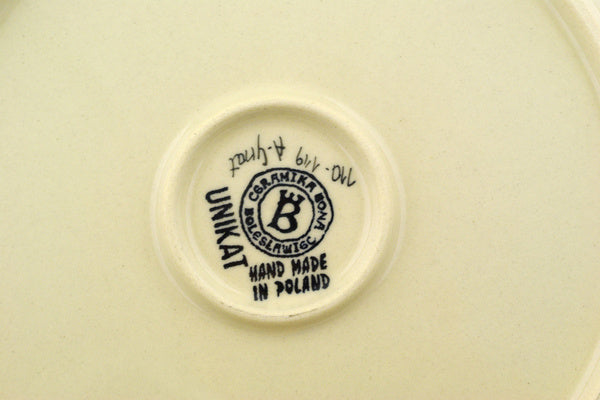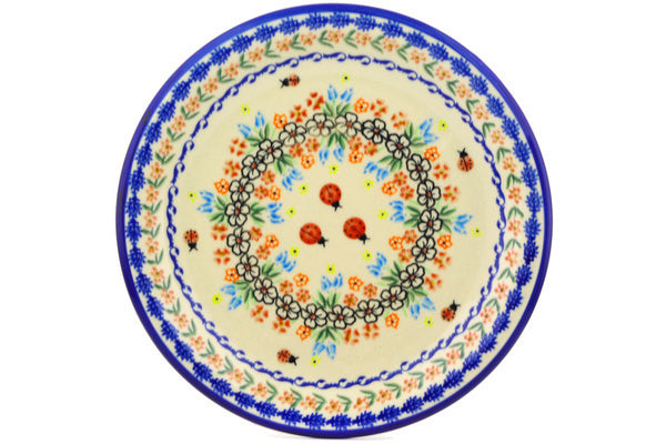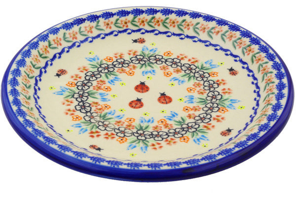 This Polish Pottery Plate is handmade and handpainted by the Ceramika Bona factory in Boleslawiec, Poland. Manufacturer item number H2494G. It is 1½" high and measures 11½" by 11½". The weight of this Plate is 2.5 lbs. It is part of the Fanciful Ladybug Collection.