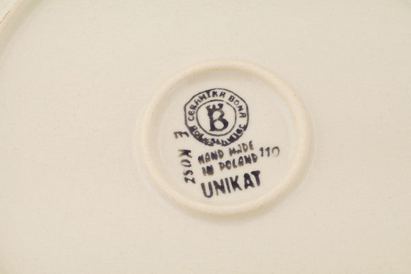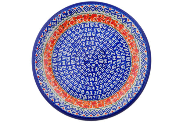 This Polish Pottery Plate is handmade and handpainted by the Ceramika Bona factory in Boleslawiec, Poland. Manufacturer item number H9665Q. It is 1½" high and measures 11½" by 11½". The weight of this Plate is 2.5 lbs. It is part of the Grecian Fire Tulips Collection.