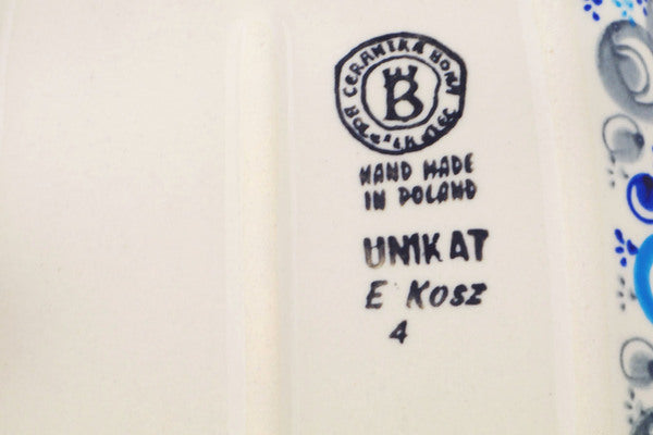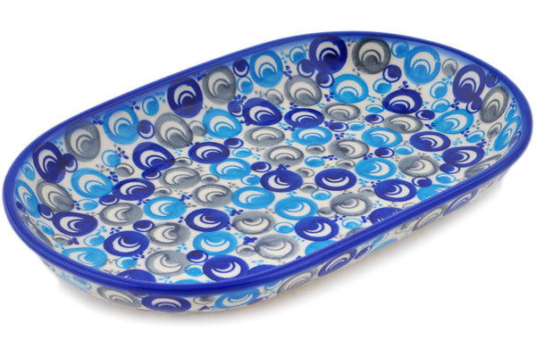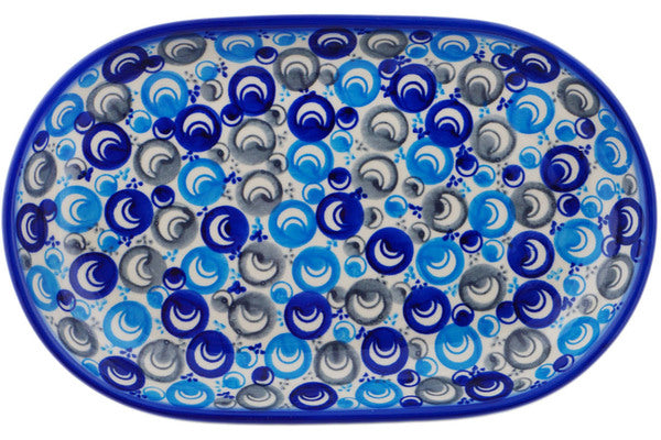 This Polish Pottery Platter is handmade and handpainted by the Ceramika Bona factory in Boleslawiec, Poland. Manufacturer item number H3087Q. It is 1¼" high and measures 10¾" by 6¾". The weight of this Platter is 1.5 lbs. It is part of the Blue Peacock Eye Collection.