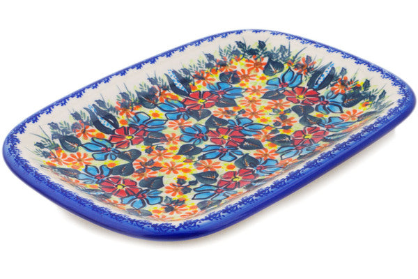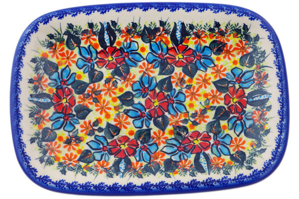 This Polish Pottery Platter is handmade and handpainted by the Ceramika Bona factory in Boleslawiec, Poland. Manufacturer item number H3084Q. It is 1½" high and measures 11½" by 8¼". The weight of this Platter is 2.2 lbs. It is part of the Bold Poppies Collection.