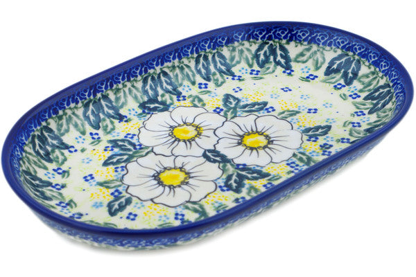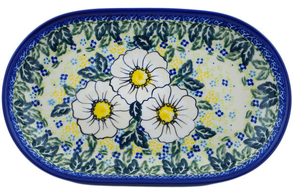 This Polish Pottery Platter is handmade and handpainted by the Ceramika Nina factory in Boleslawiec, Poland. Manufacturer item number H1978P. It is 1¼" high and measures 10¾" by 6¾". The weight of this Platter is 1.5 lbs. It is part of the Floral Fantasy Collection.