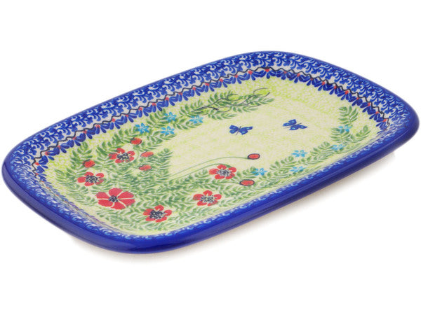 This Polish Pottery Platter is handmade and handpainted by the Ceramika Bona factory in Boleslawiec, Poland. Manufacturer item number H8769Q. It is 1½" high and measures 11½" by 8¼". The weight of this Platter is 2.2 lbs. It is part of the Metamorphosis Collection.