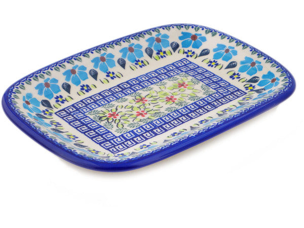 This Polish Pottery Platter is handmade and handpainted by the Ceramika Bona factory in Boleslawiec, Poland. Manufacturer item number H1947Q. It is 1½" high and measures 11½" by 8¼". The weight of this Platter is 2.2 lbs. It is part of the Pansy Morning Collection.