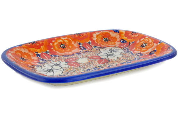 This Polish Pottery Platter is handmade and handpainted by the Ceramika Bona factory in Boleslawiec, Poland. Manufacturer item number H8480Q. It is 1½" high and measures 11½" by 8¼". The weight of this Platter is 2.2 lbs. It is part of the Poppy Passion Collection.
